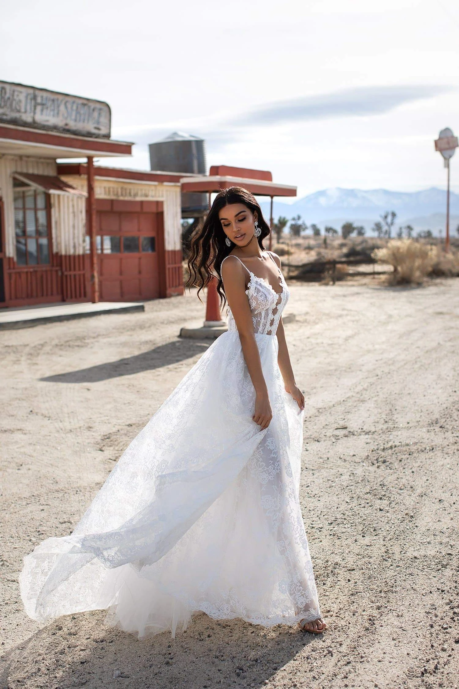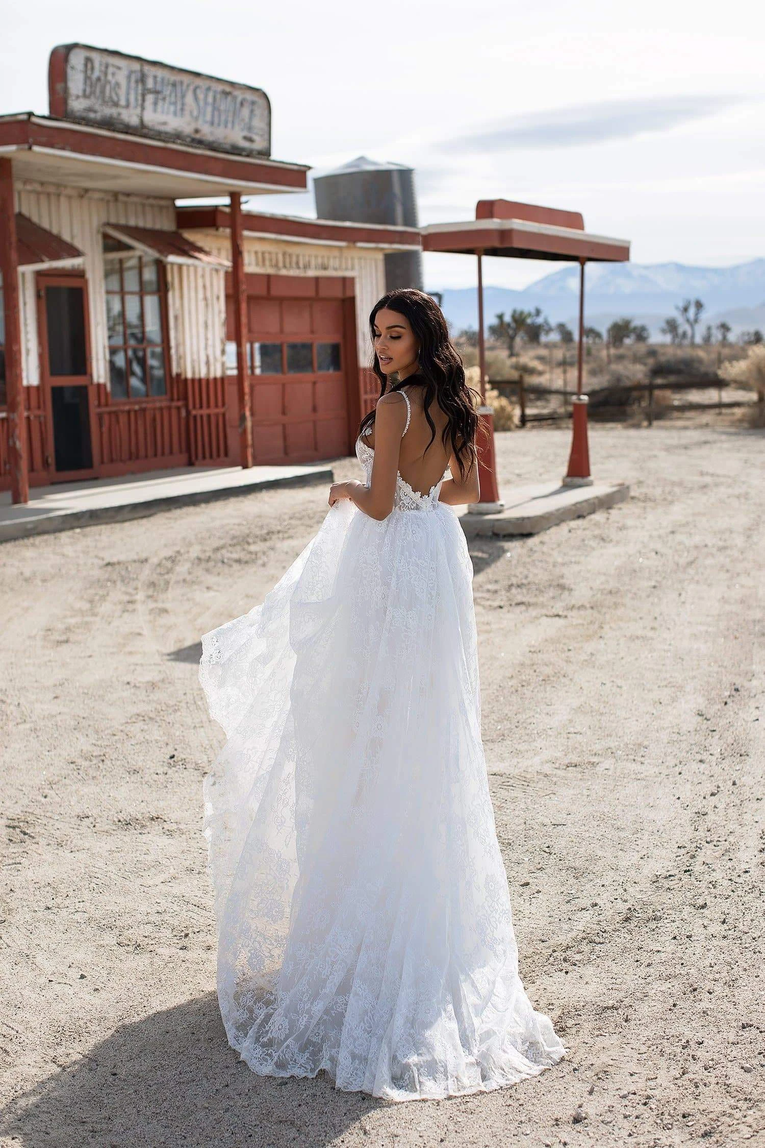 The Daina Gown is made from layered lace and tulle with a cut-out / semi sheer lace embroidered bodice. This gown is all things dreamy and makes the most breathtaking bridal gown for all the girls after that flowing & feminine look.