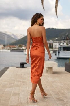 Fall in love with the gorgeous Dinara Set. This pink two-piece is perfect for any dressy day event and features a strapless cropped bustier, combined with a flowing triple seam a-line maxi skirt.