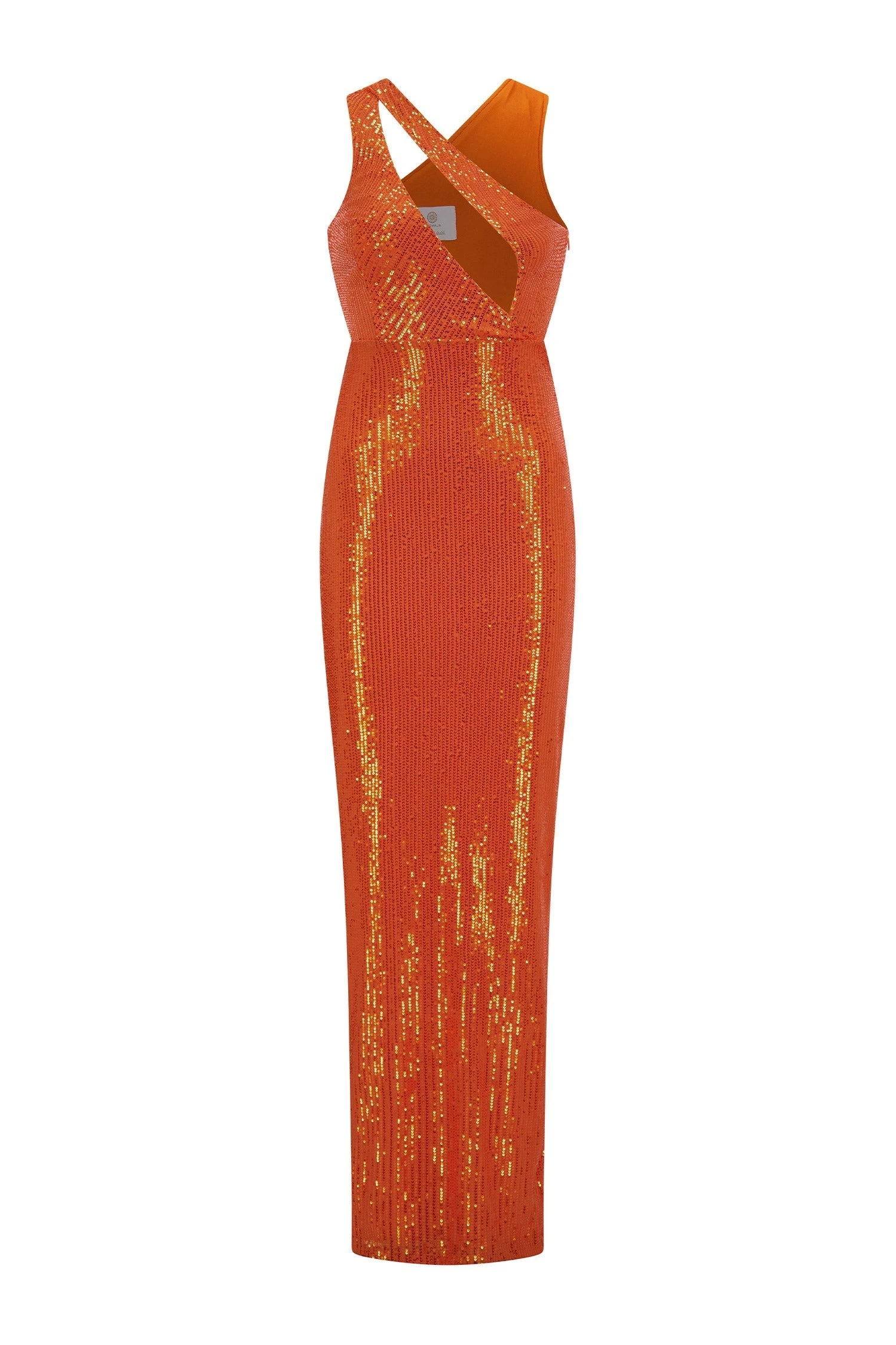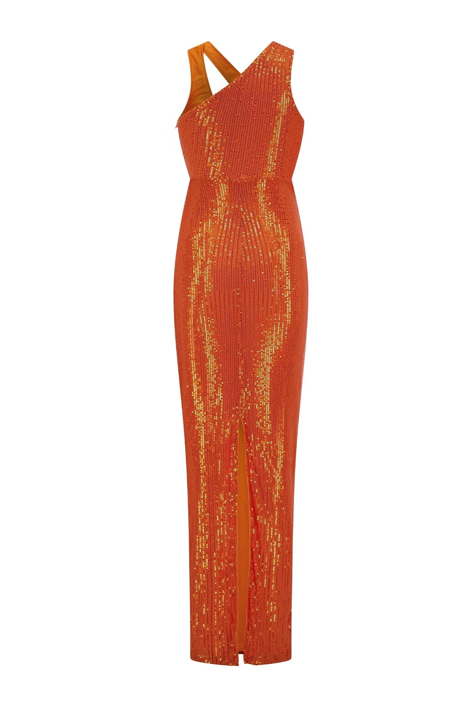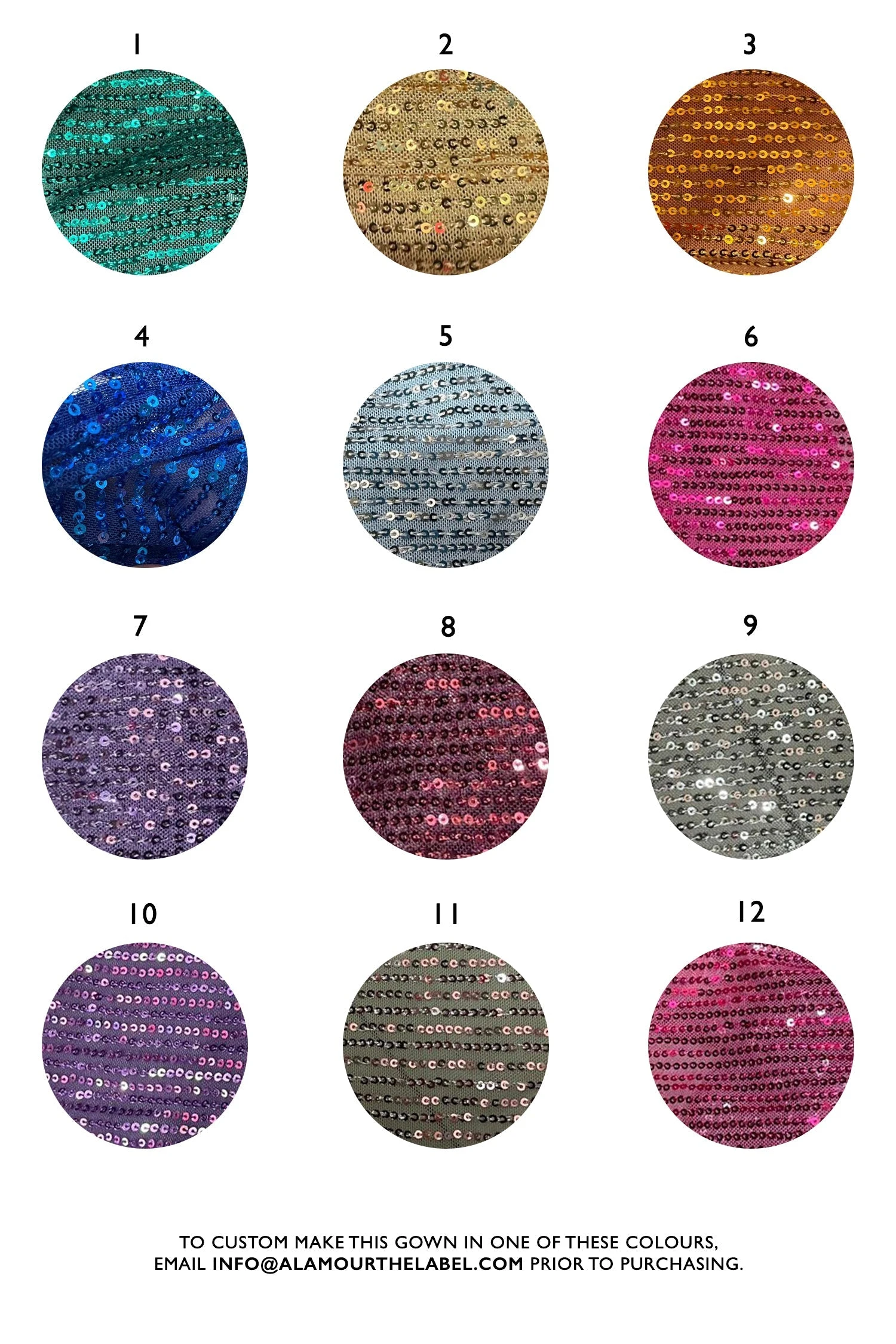 Calling all fashionistas, the Mara dress has arrived. Intended to dazzle, the Mara is a fitted maxi dress made from stretchy small sequins fabric that sparkles and glitters in the dark. Mara features an open cut neckline, closed back and a slit in the middle for easy movement.