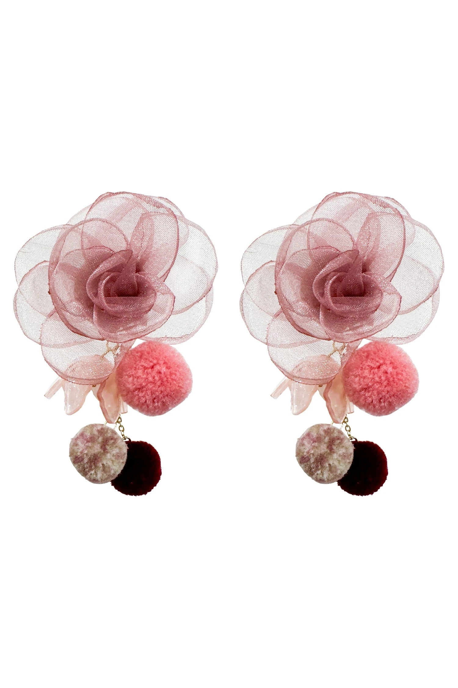 The Phoebe Mauve Statement Earrings are one of many new additions to our earring collection. Embellished with mini poms poms and statement flowers, these earrings will be sure to make a statement.
