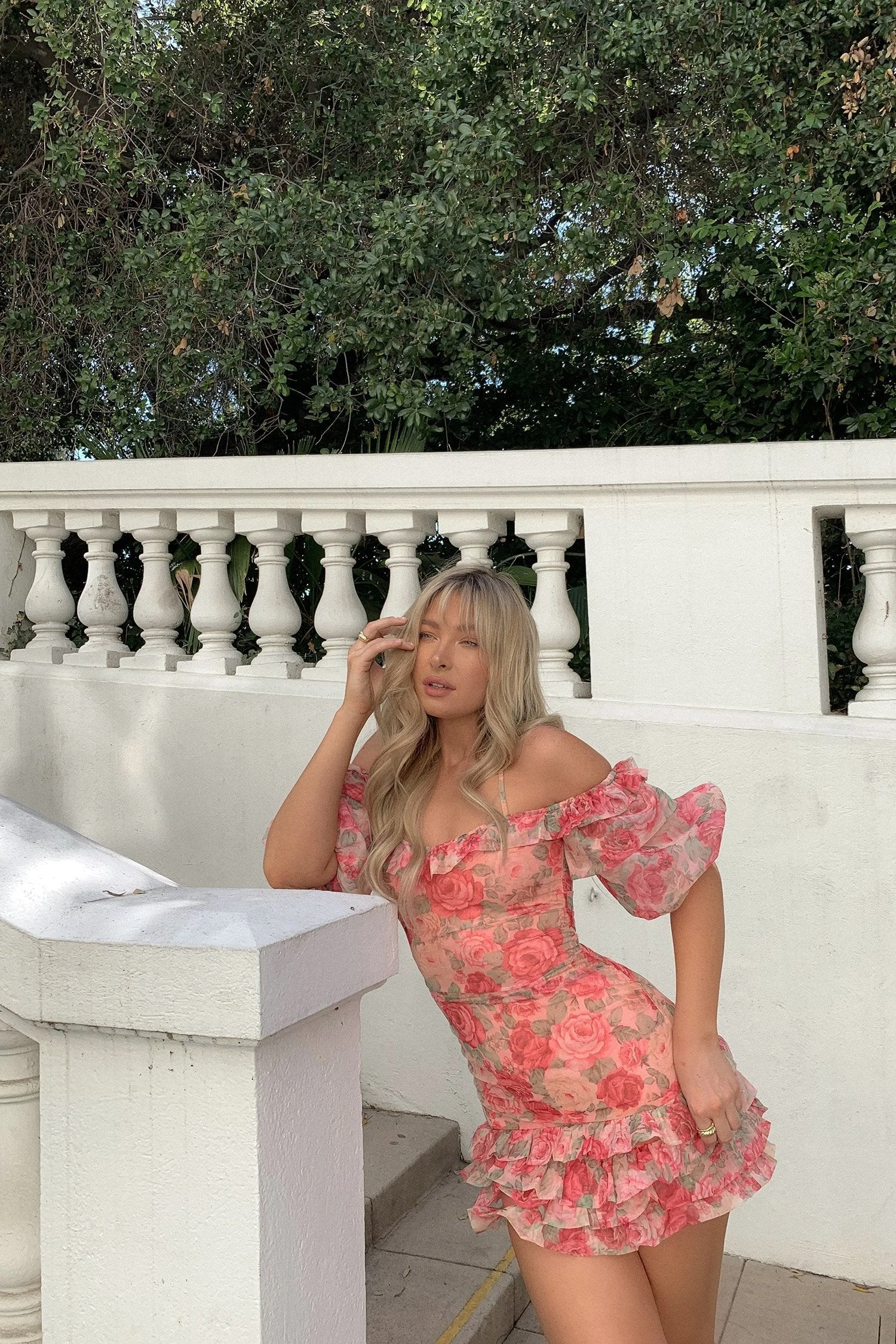 The Shailee Ruched Dress is so gorgeous and feminine. The perfect party or day dress, with thin shoulder straps, puffy off-shoulder sleeves and fitted throughout with frilly details. Also made from the cutest fabric ever.